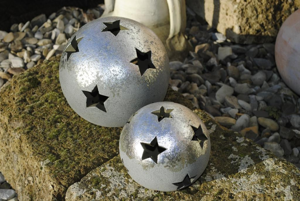 Sternkugel,Windlicht,Terracotta,frostfest,in gold oder silber,2 Größen wählbar