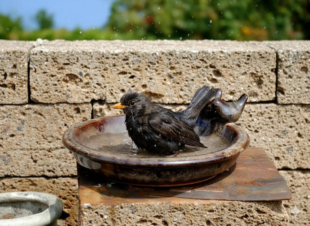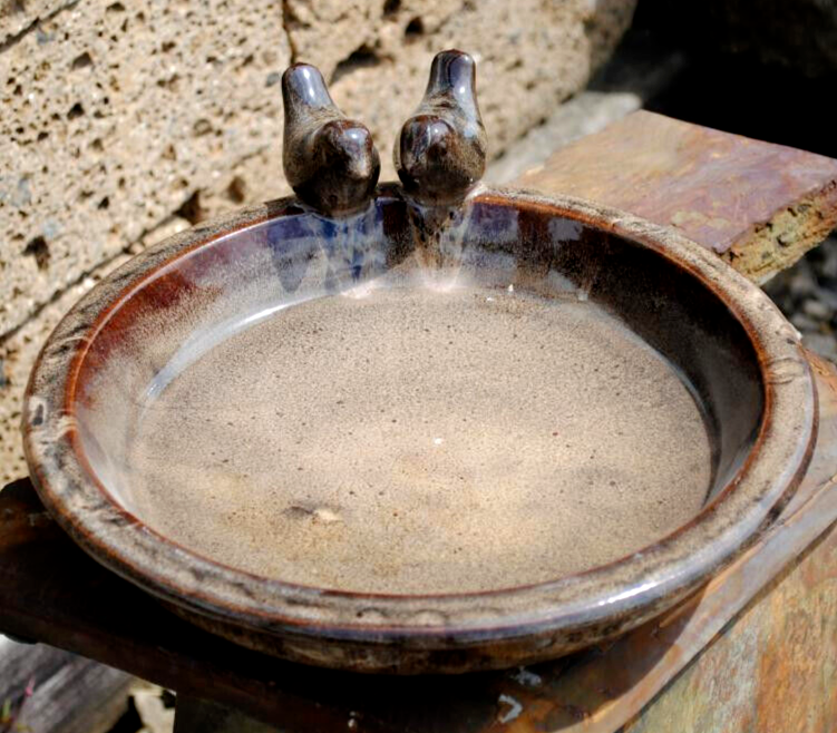 Vogeltränke,dekorativ,zwei Vögelchen,mokka glasiert,30 cm Wildvögel,Voliere,etc.