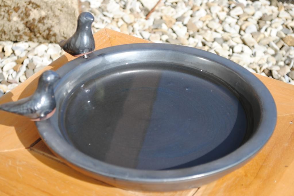 Vogeltränke mit zwei Vögelchen, rund,schwarz glasiert, 30cm,Wildvögel,Voliere