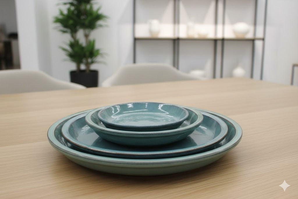 Terracotta untersetzer in wunderschönem jadegrün glasiert