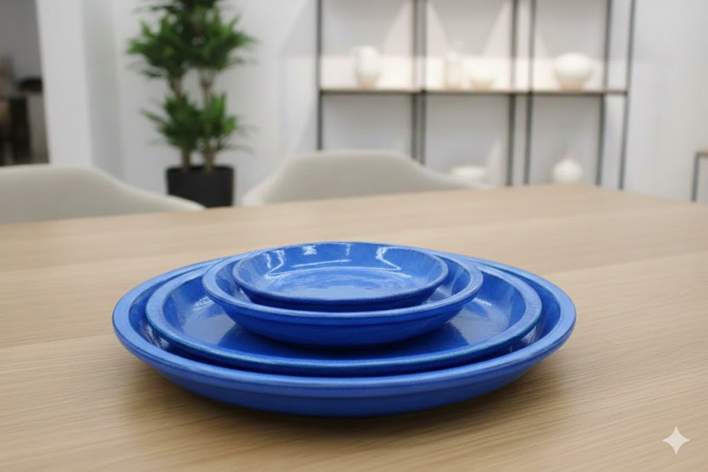 Terracotta untersetzer in wunderschönem blau glasiert