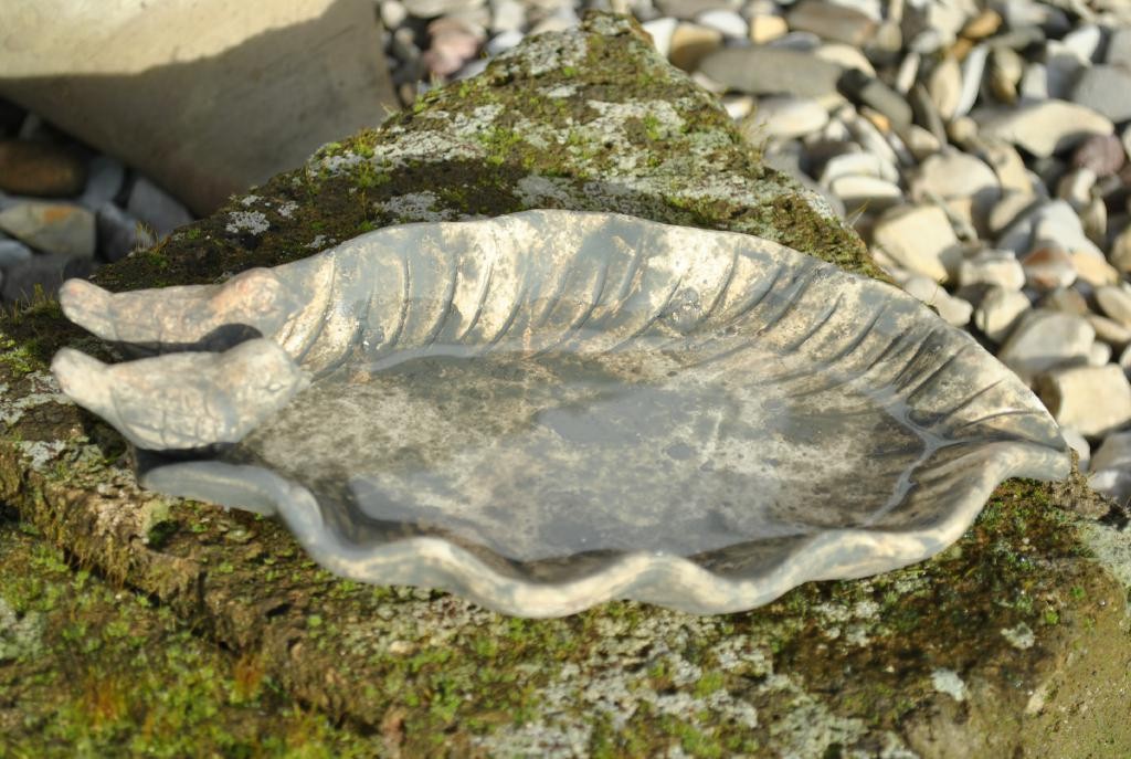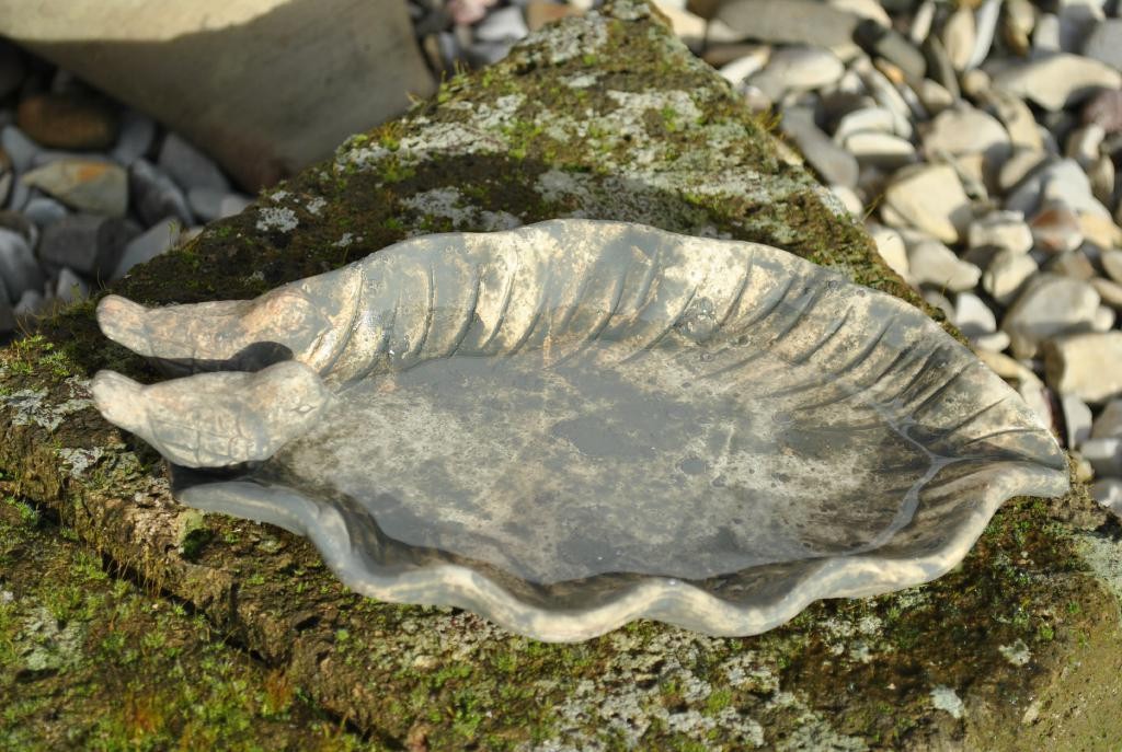 Vogeltränke,zwei kleine Vögelchen,Keramik,antik,grau/grün,24cm klein