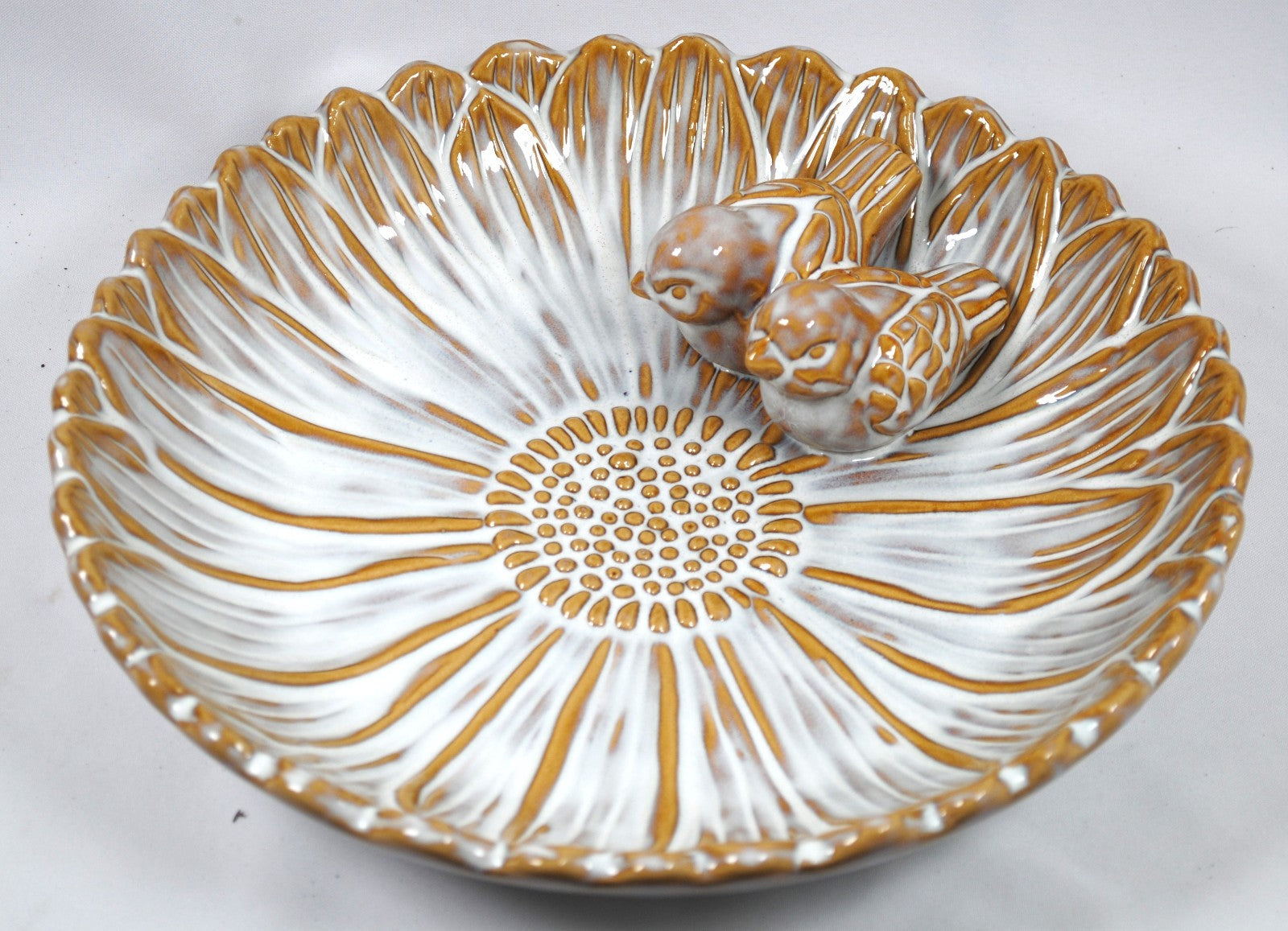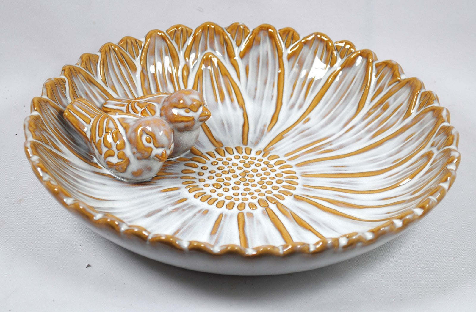 Vogeltränke,zwei Vögelchen,Blüte,creme glasiert,28 cm Wildvögel,Voliere